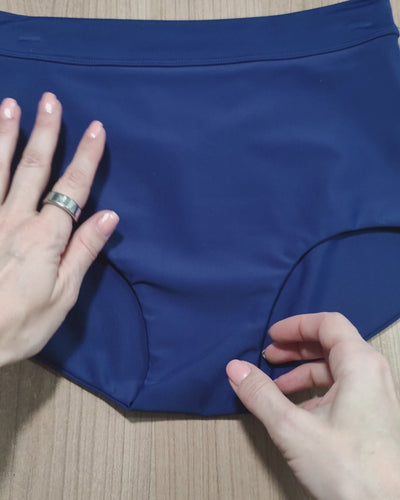 These basic shorts are perfect for those who prefer a little more coverage. The mid-waist waistband ensures a secure fit. The shorts don't have an elastic waistband, so they won't dig in uncomfortably. The cut-out elegantly accentuates the shape of your bottom.