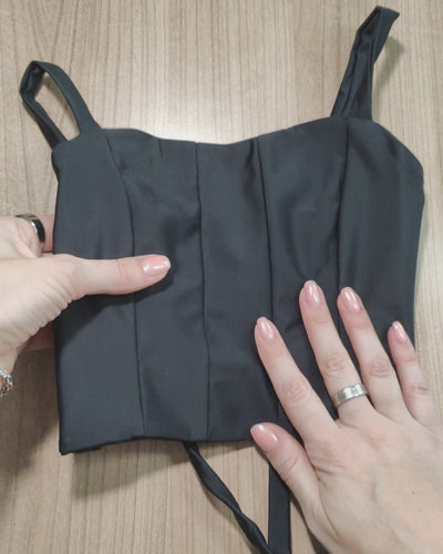 Mit den vertikalen Nähten und dem gebundenen Rücken erinnert dieser Style an ein Korsett, ohne dass der Komfort darunter leidet. Entscheide selbst, ob du die Träger am Rücken überkreuzt oder gerade tragen möchtest!